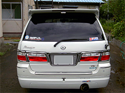 HU−30(VQ30DE) CU ホワイトパール 8人乗り ★ディーラーOP プラスチックバイザー ドアミラー自動格納装置 木目調パネル(クラスターA、Cアッパー、Cロア、メーターパネル、 テーブルフィニッシャー) キッキングプレート、ドアエッジモール、リヤバンパープロテクター メッキリヤコンビランプカバー、マッドガード、フロアーカーペット ヘッドライト自動減光システム(HID化に伴い自動消灯装置に改造) ★足回り ホイル A−TECH シュナイダーAS−05 インプレッサGDB用限定色 8J+46 スペーサー:フロント ナイトペイジャー製トレッドチェンジャー 5mm(専用ハブリング付き) タイヤ YOKOHAMA Map−i 225-50 サス&ショック IMPUL スーパーショックTYPET R33type−Mアルミ4POTキャリパー&スリットローター ★エアロ フロント、リア、アイライン:GIALLA SPORTIVO VerU サイド:IMPUL フロントグリル:GIALLA(ナガさんからのもらい物) アクシス大型リアウイング(あきらさんからのお下がり) ★マフラー RS☆R エキマグGT−U(リヤピースのみ) ★AV&オーディオ Navi:KENWOOD HDX−700 自作インストール ヘッドユニット:KENWOOD fCD−77 イコライザー、クロスオーバーネットワーク:SONY XEC−505他 スピーカーFR Pioneer TS−J170A チューンナップツィーター:KENWOOD ウーハー joke 10インチ 自作ボックス パワーアンプ 4CH(ALPINE MRV-T503) 2CH(マーベリック SZ−602) シャープ 10インチ液晶LC-10RV2-A ヒュンダイDVDプレーヤー バックカメラ:Pana アマチュア無線装置 ★その他社外品 盗難防止装置ブーメランα−2000 自作センターコンソールBOX 自作ELホワイトメーター CRUIZE製HIDユニット 8000K フロントクリアーウインカー(あきらさんからのお下がり) 純正オプションMOMOハンドル(アウチさんからのお下がり) (ヤフオクで取引したら偶然アウチさんでした!! >^_^<ぎゃははー) ROMチューン製 ECU(燃調はワンオフ) |