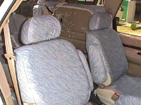 全シートカバーです。子供たちがまだまだ 小さいので付けました。 オプションカタログの写真より実物の色目は もう少し明るくて、なかなか気にいってます。 ちょっと引っかけるとほつれがすぐ出ますの で要注意。 |