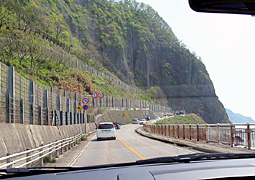 「越後七浦シーサイドライン」に突入する前に国道と県道で分断された隊列を再整列。 隊列を整えたら一気に「越後七浦シーサイドライン」へGO! U30が3台、U31が11台、ノートが1台、エクストレイルが1台、MPVが1台の計17台 で編隊走行のまま海岸沿いをドライブ!気持ち良かった♪ もちろん制限速度は遵守していましたよ! |
