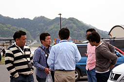 | 集合場所の「新潟ふるさと村 花畑駐車場」にて | |
