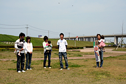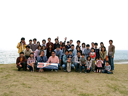 初々しい新潟メンバーさん! これからも宜しくお願いします。 左から まるプレさんのご家族、kimnyさんご家族、 Stonesさんご家族 |