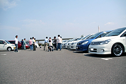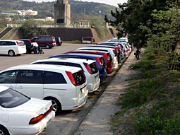 途中の渋滞も有ったため、バラバラでの駐車を覚悟していましたが、 ここでも有る程度まとまって停める事が出来ました。 |