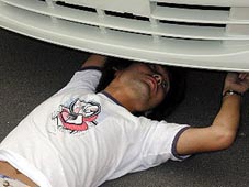 ![]() のりさん、アンダーカバーのねじをしめてい るいます本数があるからこれがまた大変 |