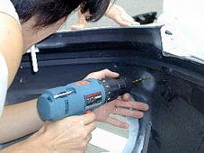 ![]() かたどり後、マーキングをして、ドリルでマー キングの内側をドリルで細かく穴を開ける。 |