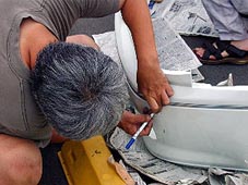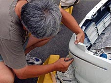 ![]() センサー取り付け後、皆真剣に作業をし ています。この姿が何とも言えず笑える。 |