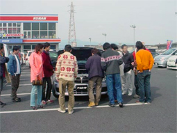 <日時> 2月28日 土曜日 10時から <場所> スーパーオートバックス湖南店 <参加者> ヒューベリオンさん たかみつさん せんごくさん サージさん ぬまちゃん@バサさん まるいちさん@もうすぐ入会 平松さん 今回は私のオプションワゴン誌内の「オプワゴ隊が行く!」のコーナー出場が 決まり、ついでにオフ会を開こうと言うことで急遽開催しました。 1週間前の土曜日に私に出場の電話連絡があり、その際ひょんな事からキャ ンセル枠2名分を頂きました。そこで、撮影会の地元でエアロ等の交換をされ ている方を考え、たかみつさんに要請しました。しかしながらもう1人が思い浮 かばず、冗談半分でヒューベリオンさんにメールで問い合わせたところまさか の「OK!」と言うことで私を含め3台の出場となりました。これも数ヶ月前までの オプションに対する投稿が効いたみたいです。 当日、ヒューさんと7時に養老で合流。たかみつさんと8時に多賀で合流し現 地に向かいました。 現地ではぬまちゃんさんやせんごくさん、サージさん まるいちさんと7台のプ レ・バサが店先に並びました。他にアルファードやセレナも数台集まり、異様 な感じの駐車場でした。 撮影と平行して、メンバーどうしの交流や、まるいちさんの強制入会など行い ながらの撮影でした。 撮影では、私やたかみつさんの物より やはりヒューさんの車が一番珍しい状 態で画像を見ても解るように黒山の人だかりでした。 撮影も終わり、ファミレスで食事をして、その後解散となりましたが 新規メンバーの開拓等楽しい時間を過ごすことが出来ました。 今後も各地で開催されると思いますので、皆さんもどしどし応募して参加 してみてはいかがでしょうか! |