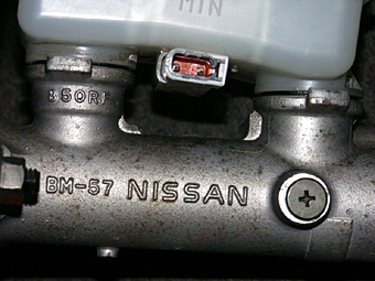 真横からみた換装後の状態です。 マスターバックはどちらでも装着可能だったと思われますが、 配管などプレとの確実なマッチングを考えてバサラのものを使用。 マスターシリンダーはR33GT−R純正(26.9φ)。 リザーバタンクとホース、ニップルはM11プレーリーを流用と 目的にあったパーツの組み合わせで見事にマスターシリンダーの 大径化に成功しました。リザーバタンクは他メーカーのものでも 問題ないので、高さがもう少し低くて同様のものがあればより ベストと言えますが、何よりもこうしたパーツの組み合わせを 用いることでどんな車でもシリンダーの大径化ができる可能性が 実証された意義は大きいと思います。 |