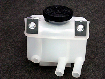 リザーバタンクの役割上、タンクはシリンダーより取付け位置が上に 設置をするのが基本。またニップルからタンクまでホースで繋ぐと 言う方法を取らねばなりません。よってベストは真横か真後ろに 接合部が設けられているタンクとなる訳ですが、ここでまたもや M11プレーリー登場。ご覧の通り真後ろに接合部がある理想の形状。 おまけに取付け位置によってはそのまま使える可能性がある取付用の ヒンジまで設けられています。 全体の高さもGT−Rのタンクとほぼトントン。これなら行けそうと 言うことでいよいよ準備万端、整ったところで作業開始となりました。 |