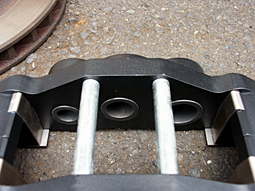 パッド比較A ブレーキパッドを重ねて大きさを比較してみました。 大きさですがAPは150oもの大きさがあります。 Outlowは120oでした。ここに純正の パッドを持ってくると、これリアブレーキのパッド? ぐらいの大きさになってしまうでしょう。 |