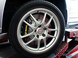 完成 無事取り付け完了です。 17インチホイールだとローターもキャリパーも 目一杯なので、ブレーキが走っているみたいです。 下に純正ブレーキとOutlowブレーキを比較の為、 参考画像として掲載して頂きました。 |