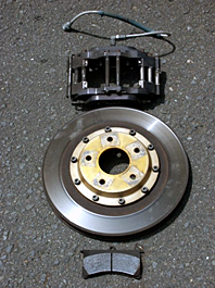 Outlowキット これまで装着していたOutlow社製 ビックキャリパーキットです。 パッドはまだ半分以上残ってましたが、 ローターは既に限界にきていました。 |
