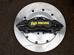 APブレーキキット 英:APロッキード社製BNR−32用レーシングブレーキキット ・対向異径6ポットキャリパー ・355φスリット入りフローティングローター ・取付け用ブラケット(他ナットなど) ・ステンメッシュブレーキライン ・ルービックス カーボンメタルスポーツパッド 以上がキットの内訳です。 |