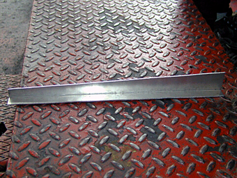 6.架台作成〜その1 取付け位置の構想が決まり、架台を作成しています。 架台は当然ながら社長の自作。“アングル”と呼ばれる ステンレスのL字型ステーをこのように糸ノコで採寸した 長さにカットし、加工して作っていきます。 ステーは厚さ2o。厚みがあるのでかなり丈夫です。 |