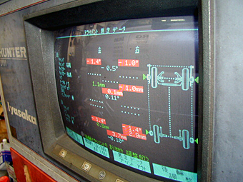 左フロントのアライメント補正作業中です。 補正前の計測データでは全体的にアンダーが出る値が出ており、 実際に走っていて車の挙動がコンマ何秒か遅れてアンダーが 出ていましたが、補正後に走ってみると出なくなりました。 これまでアライメントがズレた状態で長期間走ったことが無く、 補正前は走っていて挙動が安定しないような奇妙な不安感が ありましたが、今は無くなりましたのでアライメントのズレは 結構影響が大きいと実感しました。 |