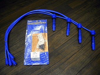 箱書きの特注の文字の通り、永井電子(Ultra)に 特注したシーケンシャル点火用のプラグコードです。 通常のプレ用プラグコードよりも40cm長く、 先端の端子も特殊な物が使われています。 |