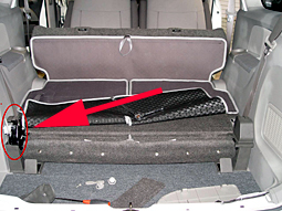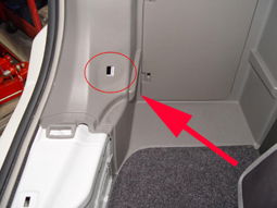 3列目シートのU字のカバー ↑の部分を外して、ラゲッジモード 3列目シートをフラットにすれば、サイドパネル内に 手が入ります。(自分の太い腕でもOK) |