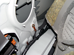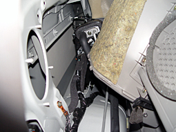 右側のサイドパネル内部です。ここには後部座席の エアコンのコンデンサーがありました。 |