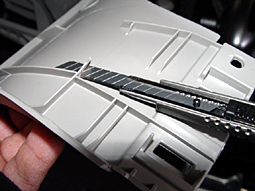 取り付け位置のパネル裏面をカッターでカットしま す |