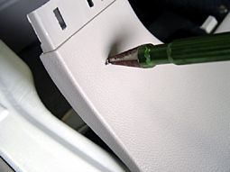 センターパネルを外すと、スクリュークリップが出 てきます (ドライバーで中央のピンを外します) |