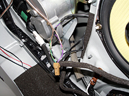 配線は、リヤスピーカーの出力から割り込ませま した(ハンダー付け) |