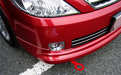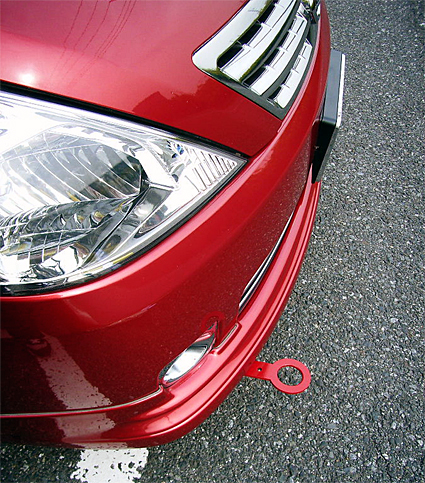 フロントスポイラー アドミレーション* 牽引フックなので このぐらいの強度?が必要なのでしょう。 取り付けはジャッキUPの必要もなく、六角(19番)レンチ2個で取り付けが出来ました。(約10分) ボルト1個で付いているのでやや心配ですが(U-ナットなのでずれ落ちる事はないと思います)。 GREAT TAKAさんのレポート同様、牽引部と取り付け部の間に「サービスホール」があるので そこに結束バンド等で固定すればなお安心です 一番心配していた事ですが、ライダー用に作った長さなのでフロント「アドミのエアロ」先端より約 4cmほど出っ張りました(画像を参考にしてください) バンパーよりかなりはみ出しますと 危険性があると思いますのでもう少し改良してもらいたいです。 (伸び縮み出来るようにとか 使わないときはバンパー内に収める事が出来るようになど・・) カラーバリエーションも豊富で、ファッション性そして価格も¥3.500-(市販されている物は)と安い ので買いやすいとは思いますが、もう少し機能性?を改良すればもっともっと売れるのではないで しょうか? 最後に・・・ けんいん屋さん、偉そうなレポートになりまして申し訳ないですが、これからも良い品物を提供して ください。 有難う御座いました! 『けんいん屋さん』HP http://www.keninya.com/ |