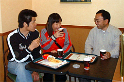 暖かい場所ということで、マックでコーヒーを飲ん での談義です。 コペンの話とか札幌が熱い(掲示板での盛り上がり)とか せばすちゃんさん号の今後の進化予定など、奥様も一 緒になって車を楽しんでいるのがひしひしと伝わってきま した。 |