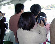 |   | 餌のかっぱえびせん目当てにやってくるかもめにえびせんを あげているメンバー一同。うまいかもめは投げると空中で キャッチしていきます。  |