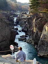 当初の予定を変更して「空飛ぶ団子」なるものの正体を見に 巌美渓へ行きました。川がちょっとした渓谷になっています。 迫力は川くだりもできる猊鼻渓の方でしょうか。 こちらは何となく日本庭園的なところがあります。 |