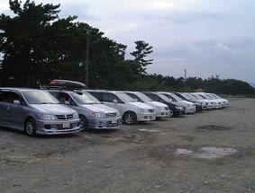 日時 9月26日(日) 場所 静岡県静岡市 幹事 ヒューベリオンさん はたもちさん クリプさん(事前下見協力) 参加者 平松さん 伊藤さん 雄之助さん こうじさん まーさん クリプさん はたもちさん ダリアンさん 鍋リンピックさん 下山さん okiさん ふじいさん ヒューベリオンさん ようじさん(お見送り) よいごしさん(当日電話) こいち 順不同 ヒューベリオンさんレポート(一部こいち編集) 関東組は東名高速海老名SAに“お見送りのよーじさん”を含め7台が集合しました。 しばし雑談をするうち「ステッカーは」という話になり、「ありますよ」「貼っちゃいましょう」 と早くも皆でリアウィンドウに貼りました。 第二中継点の富士川SAにてはたもちさんと合流しました。 そして一路静岡へ 予定よりちょっと早くスーパーオートバックスに到着。 現地静岡では東海組は日本坂で事故渋滞にはまっているというので少し遅れるかな と思っているとジャスト12時、エキゾースト音を響かせて東海方面の皆さん登場、 関東組、東海組ご対面となりました。 早速自己紹介・名刺交換。 その後店で買い物をした後、日本平へ向けて14台連ねて大移動しました。 この異様な光景に対向車は皆ビックリ。 日本平ではオフ会恒例!全車横一列に並べて記念撮影…が 台数多すぎてファインダーに収まりきらず、無理矢理収まるように並べて撮影。 GOプレオフ会史上最大の14台はまさに壮観の一言。 駐車場に入ろうとしたレガシィが迫力に気圧されて、別の駐車場へ逃げてしまったり、 観光バスの乗客が不思議な光景をみる眼差しでこちらを見ていたのが印象的でした。 試乗会も短い距離でしたが開催。ゆっくりお互いの愛車を見比べて批評しあいました。 最後は富士山をバックに記念撮影しようと三保へ移動。 三保では下見では予想しなかった事態が…そう“平松さん”のジアラのエアロフル装備です。 プレは車高高いから大丈夫だろうと選んだ海沿いの駐車場がひどい凸凹道で「まずい! “平松さん”ここ走れるか?」と幹事一同ヒヤヒヤもの。 さて富士山バックに記念撮影を…と思ったら厚い雲が垂れ込めて富士山見えず。残念。 その後、清水の海を見ながら語らい再会を誓い解散となりました。