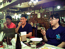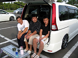 食事後のひととき。 左からのり@セレナさん・てらっちゃん@OBさん rascalさん |