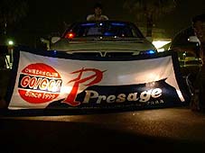 急展開の中でのオフでしたが8名の方(2日間合計)に集まって頂きありがとう御座い ました。 開催日:2002年9月7日(土曜日)8日(日曜日) 時間:7日;13時〜20時 8日:13時〜18時 場所:カレスト座間第3駐車場・アップガレージ町田店 内容:大漁旗に寄せ書き、食事、プレ談義、中古パーツ漁り、記念撮影 参加者: 7日:のり@OBさん・ken’sさん・つかださん・ようへいさん・デイトナさん・たくみさん 8日:のり@OBさん・ken’sさん・大場さん・Nobu&Akika@OBさん・たくみさん 電話乱入:小島くん(7日・8日)・和君さん(8日)・ナガ@OBさん(8日) 7日のレポート 当日は13時前にのり@OBさんが到着し、自分が約10分遅れで到着、オフ会と言うより密会 に近い状況の中始まりました。 その後ken’sさんがカレスト前を横切って走り去っていくのを確認したところご本人から電話が あり、その後合流し3名となったのですがのり@OBさんが夜勤の為帰宅され、2人で寂しくカレ スト近くのバーミヤンで昼食、その後2人して車の中で寝てしまうという史上初!?の睡眠オフ に発達してしまいました。 一眠りしたあとで東名横浜町田インター近くのアップガレージ町田店に中古パーツの物色に 出掛けました。 豊富な品揃えの中でken’sさんがルミアスフィルムを¥3,000−位で購入し、カレストに戻 ろうとしたところ晴海ミニオフに参加されていたつかださんからカレストに着いた、とTELを頂き 急いで(?)カレストに戻って合流・寄せ書きと記念撮影をし、解散となりました。 8日のレポート 前日に引き続きカレスト座間でのオフだったのですが当日はエクスのオーナーズクラブさんも カレストでオフを行っていました。 プレのメンバーは、と言うと7日の3名+大場さん、と寂しいオフになりましたが前日同様ken’s さんとアップガレージに物色に行きました。(ken’sさんはまたルミアスフィルムを購入)その後 夕方にNobu&Akika@OBさんがスキール音と共に登場し軽い談義の後18時ちょっと過ぎに 解散しました。 ちなみに2日間連続で電話をくれた某氏は結局カレストに姿を表しませんでした。 いよいよ今週末に大漁旗は山梨県に渡ります。 |