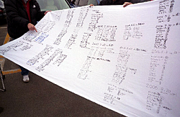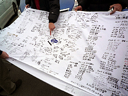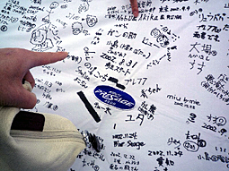 大漁旗オフに参加された方々が記した足跡 です! 今は2枚目。 |