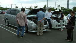 とき・・・2006年7月30日13時から17時 ところ・・ジャスコ釧路店駐車場 GO!プレ大漁旗が、函館から浦河経由で釧路に到着、とりあえず次の移動が決まっていなかったので、 道東メンバー中心に寄せ書きオフ会を開催することとしました。 開催間近に道央メンバー数名から参加表明があり、楽しみにしていたところ、予想を上回る乱入台数と なり、大いに盛り上がりました。 当日は曇り時々晴れと過ごしやすいオフ会日和でした。 幹事が店内で昼食と買い物を済ませて帰ってくると、すでにnobuta号とvigor号の姿が。 久しぶりの再会をvigorさんと喜び合っているところへnobutaさんが合流。 集合時間を過ぎる頃には続々と、地元のMMさん、せばすちゃんさん、ポポロッチさんが集結しました。 と、そこへ函館オフにも参加した道央メンバー3台(onnjiさん、まんちゃんプレさん、Ken-Boさん)が登場、 この時点で9台の参加となり釧路におけるオフ会の最多台数となりました。 名刺交換、談議などをする中、あっという間に1時間。仕事の合間を抜けて片道1時間以上かけて参加し てくれた、最も東に位置するメンバーnobutaさんの帰宅時間となったことから、遅ればせながら自己紹介 を行い、中締めの集合写真と寄せ書きを行いました。 それから10分ほど経ち、札幌メンバーのてらっちゃんさんが洗いたてのボディ(笑)で登場、これで参加 台数10台となり、記録更新です。 U30、U31それぞれに工夫の跡が見られ、それぞれのオーナーさんが参考に(物欲菌感染とも言いま すが)していました。 てらっちゃんさんも含めて寄せ書きと再度の集合写真撮影を行った後は、時間の許す限り談議を行いま した。 地元メンバーが仕事の都合などで退場する中、札幌方面から強行軍で参加されたメンバーさんに「今日 中に家に帰れる時間」まで粘っていただき、次回旭川オフ会の予告と最東端、最北端への到達を意思統 一し、17時過ぎに解散となりました。 今回の参加台数は10台(U30前期が4台、後期が3台、U31が3台) せばすちゃんさん、MMさん、nobutaさん、ポポロッチさん、てらっちゃんさん、vigorさん、Ken−Boさん、 まんちゃんプレさん、onnjiさん、プレサンジ(幹事) メール参加していただいたRICOCOさん、rascalさん、にれちさん、ありがとうございました。 他にも参加メンバーさんに数多くのメールが届いていました。 重ねて感謝いたします。 参加された皆さん、遠路はるばる参加された方も含めてご苦労さまでした。 またどこかでお会いしましょう! |