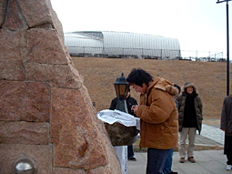 日 時 平成16年1月25日(日) 13:00〜 場 所 下関市立水族館「海響館」 参加者(順不同) 岡山:藤原さん 広島:サムキチさん、きよgさん、きのこさん 島根:ササさん 山口:エクスタントさん、かずひろさん 大分:もりしげさん、大猫さん 福岡:じじさん、としのりさん、ezaさん、みのちゃんさん、あっくんさん 竹田さん(じじさん友人)、まっこーさん(P's Club)、どんまる メール&電話参加(順不同) こいちさん、たかみつさん、さのかずさん、かわっちさん、りきりきさん 吉川さん、ぷれっちさん、みーきさん ようやく大漁旗を本州へ返す日がやってきました。 年内九州脱出を目標に調整してきましたが、どうしても都合が合わず延び延びに なってしまいました。 今日は、この冬1番の寒波の影響もまだ残っており、結構するか中止にするかの 判断もギリギリまで悩みました。 こんな寒空にもかかわらず、17名もの方に集まって頂きました。本当にありがとう ございました。 しかし、今日はほんとに寒かったです。 オフ会開始後は、ほとんど雪は降らなかったものの北風は依然として強く、みな さん凍えながらの談義でした。 集合時間から約30分前、私、としのりさん、みのちゃんさん、もりしげさんが到着 しました。 そこに、見覚えのある広島ナンバーのライダーが… きのこさんだ!なんて話していると、サムキチさん、きよgさんまで登場! この天気の中、広島からよくぞ来てくれました。(感謝) その直後、藤原さんまで。。。ほんとにびっくりです。(感謝感激) ひととおり参加予定のメンバーが揃った所で、記念撮影、寄せ書き、談義をして いると、見慣れないU31赤ライダーがやってきました。 P's Clubのまっこーさんでした。掲示板を見て、来てくれたようです。 それから、まっこーさんも加わり談義していると、次は、島根ナンバーのプレが・・・ ササさんまで来てくれました。 そこで、突然の思いつきですが… 島根地方は結構な積雪があるそうでノーマルタイヤでは到底行けそうにないという 話になり、急遽「大漁旗リレー(山口→島根)」の開催の運びとなりました(爆) 再度記念撮影、寄せ書きを行いました。(この時、館内にいた方すみません(汗)) という訳で、心配していた積雪も無く、無事に福岡→山口→島根へリレーする事が できました。 しかし、本当に寒い1日でした。 参加されたみなさん、風邪などひかれませんようにお祈り申し上げます(爆) 次は暖かくなってからゆっくりと… |