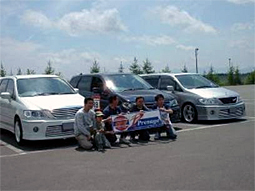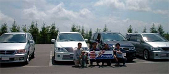 とき・・・平成15年6月15日(父の日)10時から ところ・・十勝インターナショナルスピードウェイ (帯広市の南、十勝管内更別村) この日サーキット主催で開催されるイベント「父の日走行会」に便乗する形で、というよりも 参加したい幹事のわがままにメンバーを付き合わせてしまう形でのオフ会開催となりました。 幹事(寂しく単身)が走行会受付時間の10時少し前に会場に着くと、すでにオフ会初参加 のたかちゃん5.1さん(お仲間と参加)とホクト号さん(奥様と参加)が到着されていました。 挨拶を交わした後走行会の受付をし、しばし談義。 少し遅れて到着のMMさん(ご家族で参加)と4組で、またしばし談義を楽しみました。 たかちゃん5.1さんのプレは自作や小技が盛りだくさんの勉強になるプレでした。 タイヤが少し不安なのでフリー走行は控える、とのことです。 ホクト号さんのプレは車高調でベタベタに落とされ、ボンマスの良く似合うライダーでした。 子供ができてからはマジ走りから少し遠のいている、とのことです。 2台は体験走行(家族を乗せてコース3周、先導車付き、追越禁止)のみの参加でしたが、 MMさんと幹事はヘルメットとグローブ着用のミニバンフリー走行にも参加しました。 体験走行では、幹事が勘違いから隊列に参加せず、せっかくの編隊走行が3台だけ(幹事 は2台を挟んだ後ろから)になってしまいました。申しわけありません。 体験走行のみのお二人も「マジ走り」は嫌いではなかったようで、次の機会を狙っている様 子でした。 体験走行後、集合写真の撮影を行いましたが、はじめての「撮影会」モード。 カメラが5台ほどでメンバーと紙看板を狙うの図にどこを向いてよいやら照れくさいやら。 そうこうしているうちに12時55分からのミニバンフリー走行が始まりました。 先に行われたブリーフィングでは、スタッフから「ミニバンで参加の方、ひっくり返らないよう に」と言われました。ペースカー先導の慣熟走行の後、サンジ号、MM号、ホンダ軍団(ス テップワゴン3台、ストリーム1台)の順でコースイン。 幹事は前車アベニールでサーキット走行を楽しんでいたこともあり、1周目からフルスロッ トルでタイヤ鳴きまくりです。 シフトは「2」と「D」(ODオフ)しか使わず、やはり4速コラムATではサーキット走行に向か ないということを実感。 走行開始早々、サーキット走行初めてのMMさんが2台のホンダ軍団に抜かれてしまいま した。 その2台は2周目にサンジ号におそいかかり、2周目中盤でステップWを、3周目の第1コー ナーでストリームを先に行かせ、無茶・無理をしない作戦に出ました。 その後はプレ2台ともそれぞれのペースで、25分間で10周のサーキット走行を楽しみまし た。 走行終了後、スタンドやピット上から観戦(?)されていたたかちゃん5.1さん一行とホクト 号さん夫妻、MMさんのご家族と、興奮冷めやらぬ中しばし歓談し、それぞれ予定がある ことから13時40分ころ解散となりました。 メールを下さったこいちさん、majinbooさん、たかみつさん、だいパパさん、NORIKO姫 ありがとうございます。 参加された皆様の感想です。 たかちゃん5.1さん 初めてオフ会に参加しました、とても楽しい一日でした。皆様のプレを見て、新しい発見を することが出来て、とてもありがたいと思っています。 私とホクト号さんは、フリー走行のみでしたが、プレサンジさんとMMさんが本気(まじ)走り をみて、感動しました。もし また このような走行会があるのならば、私もまじ走りすると、心 に誓いました、そのためにもタイヤ買っときます。 またオフ会参加出来たら参加いたします。 幹事プレサンジさん MMさん ホクト号さん また会いましょう ホクト号さん 十勝走行会オフ会ご参加の皆様、大変お疲れ様でした。 オフ会初参加で少し不安でしたが、すぐに溶け込めることが出来一安心。 天候も晴天に恵まれ、サーキット3周の体験走行に参加し楽しかったです。 皆さんと別れた後、18:35に着きました。フロントバンパーは虫だらけで大変なことに・・・ 明日洗車しよっと 本当に今回参加してよかったです。 また、どこかのオフ会でお会いしましょう。 MMさん いつものオフ会とはちょっと違った趣向のオフ会でしたね。 私の場合、やはりミニバンフリー走行の25分間、実に楽しかったです。 スタート前は、たかみつさんお察しのとおり、心臓バクバクでした。 スタートしだすと手に汗、ヘルメット内も汗でした。 初体験ということもあり、最初の2〜3週は、要領が得られず、次第になれてきたかなというと こです。 う〜ん、エンジン、タイヤ、タワーバー、軽量化などが頭の中をよぎりながら、走行していまし た。 最後は、腕かと変に納得したMMでしたが・・・。 本当、これは記念に残りますね。 プレサンジ さん 「十勝走行会オフ会」に参加された皆さん、ご苦労様でした。 前日には雨が降ったりと天気が心配でしたが、今日は天気もよく、暖かい(長袖だと暑かっ た)オフ会日和でした。 とにかく