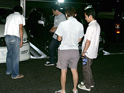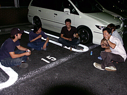 日中は暑くてかないませんが、夜もこの時間になると 涼しく過ごし良い陽気。缶コーヒー片手に談義に 華が咲きます。 |