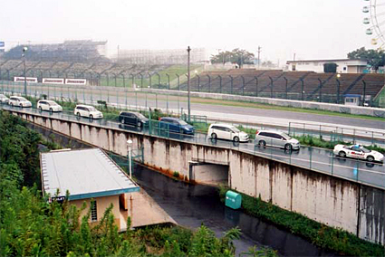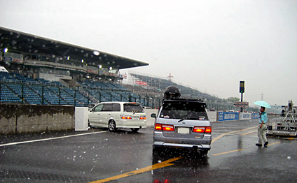 Nパドックからサーキットへ移動します。 奥では管理人が鈴鹿サーキットさんと 最後の確認をしています。 |