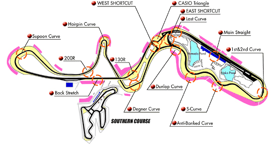 カロナビでは鈴鹿サーキットのコース は道ではなく「絵」でした。 ずれてる・・・。 |