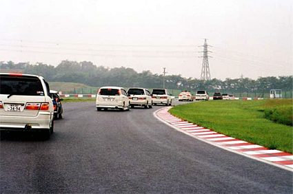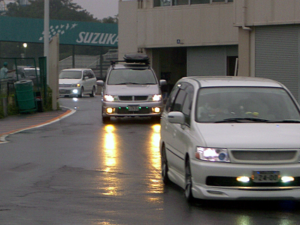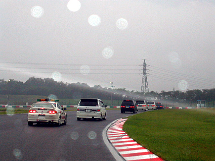 サーキットからでてきました。 皆さんライトをつけていました。 |