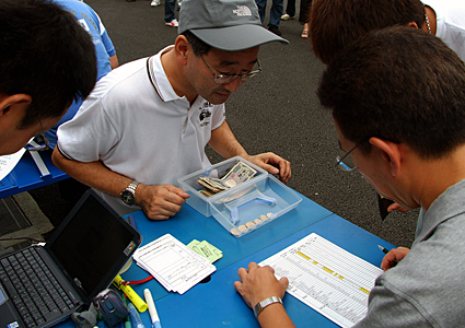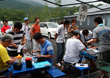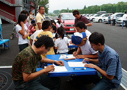 受付の横ではスルガスピードさんのアンケートに 記入しています。 アンケート実施にあたりお手伝いいただいたインチ さん、びっぐぱぱさん、マコ坊さんありがとうござい ました。 |