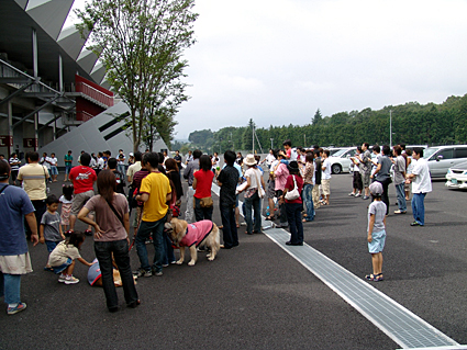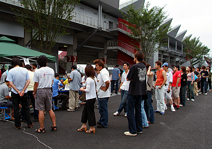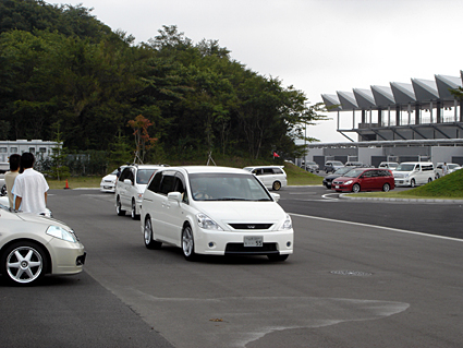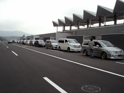 富士スピードウェイの東ゲート こちらで入場料金を払います。 早くもプレ渋滞が起きています。 |