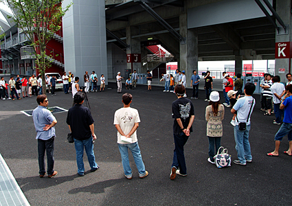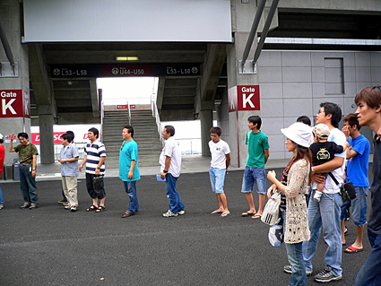 会場の準備をしているので会場前で 待っていてもらっています。 |