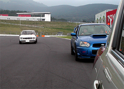 ハコスカGT−Rとインプレッサも走ります。 インプレッサのドライバーはヘルメットをかぶ っていますね。 |