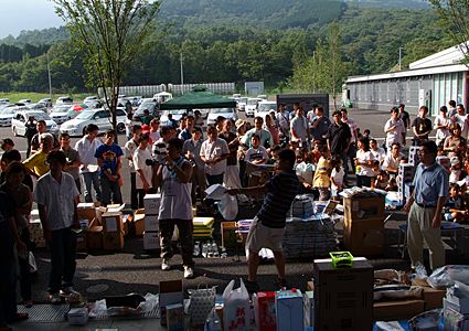 お手伝いをしてくださった旅人さん、りおパパさん プレ77さん、たにどんさん、そしてマスクをかぶっ たたかまこさん。 |