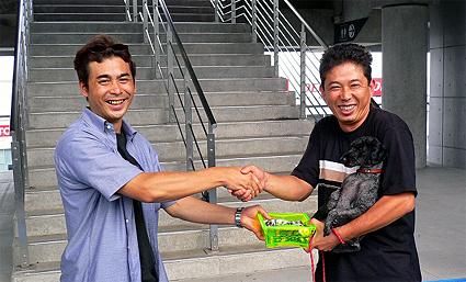 スルガスピードさんののマフラーを受け取った ひなパパさん(の娘さん) 重くないですか? |