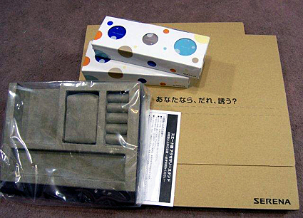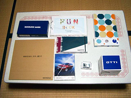 ![]() ・セレナ ペーパークラフト 1個 ・セレナ FUN BOOK アルバム 1個 ・NOTE アルバム 2個 ・プレサージュ DVD 1個 ・OTTI マグカップ 1個 ・アルバム(水玉模様の四角もの) 1個 ・バスエッセンス 1個 ・ティッシュ 1箱 ・Cube チョロQ(以前に貰って未開封だったもの) |