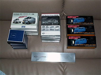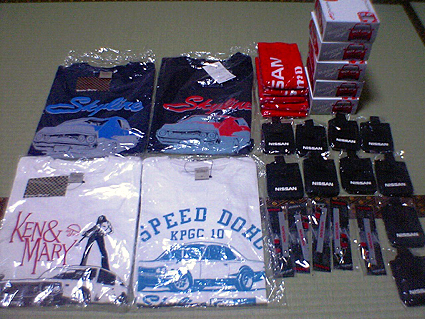 ![]() ・日産携帯ポーチ:10 ・ダットサンMODEL15ロードスター携帯ストラップ:5 ・マーチカップBOXティッシュ:5 ・ニスモミニタオル:5 ・KPCG10 Tシャツ サイズM :1 ・ケンメリGTR Tシャツ白 サイズM :1 ・ケンメリGTR Tシャツ青+水色 サイズM :1 ・ケンメリGTR Tシャツ青+赤色 サイズL :1 ・エルグランドの本革製キーホルダー |