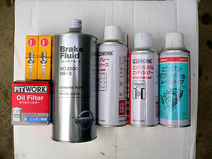 ![]() ・NGKプラグ:4本 ・日産純正U30用オイルフィルター:1個 ・日産純正ブレーキフルード:1個 ・日産純正スプレーグリース:1個 ・日産純正エンジンシステムコンディショナー:1個 ・日産純正エンジンリフレッシュ:1個 | たかだんさん |