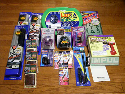 ![]() ・タイヤチェーン(鉄) 215/65-16(新品) 1台分 ・充電式ドライバードリル(4.8Vですが・・新品)1台 ・ワンタッチサンシェード(サイド&リアガラスの日よけ)3個 ・ドリンクホルダー 2個 ・携帯用テレホルダー 2個 ・イルミネーションライト 2個 ・静電気を軽減!アースキーホルダー 3個 ・リアナンバーカバー 1枚 ・インパルステッカー 1枚 |