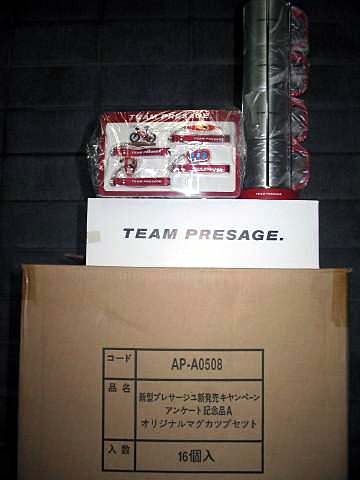 ![]() 「Team Presage」 オリジナルマグカップセット 5個 レジャーシート 5個 サンシェード 5個 セレナ ラジコン 1台 |